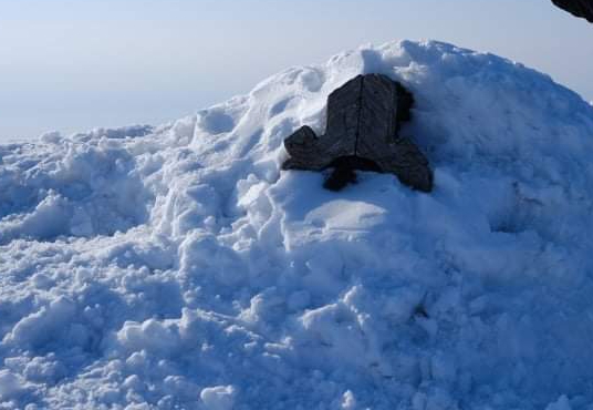 山頂の祠は雪で埋もれていた。