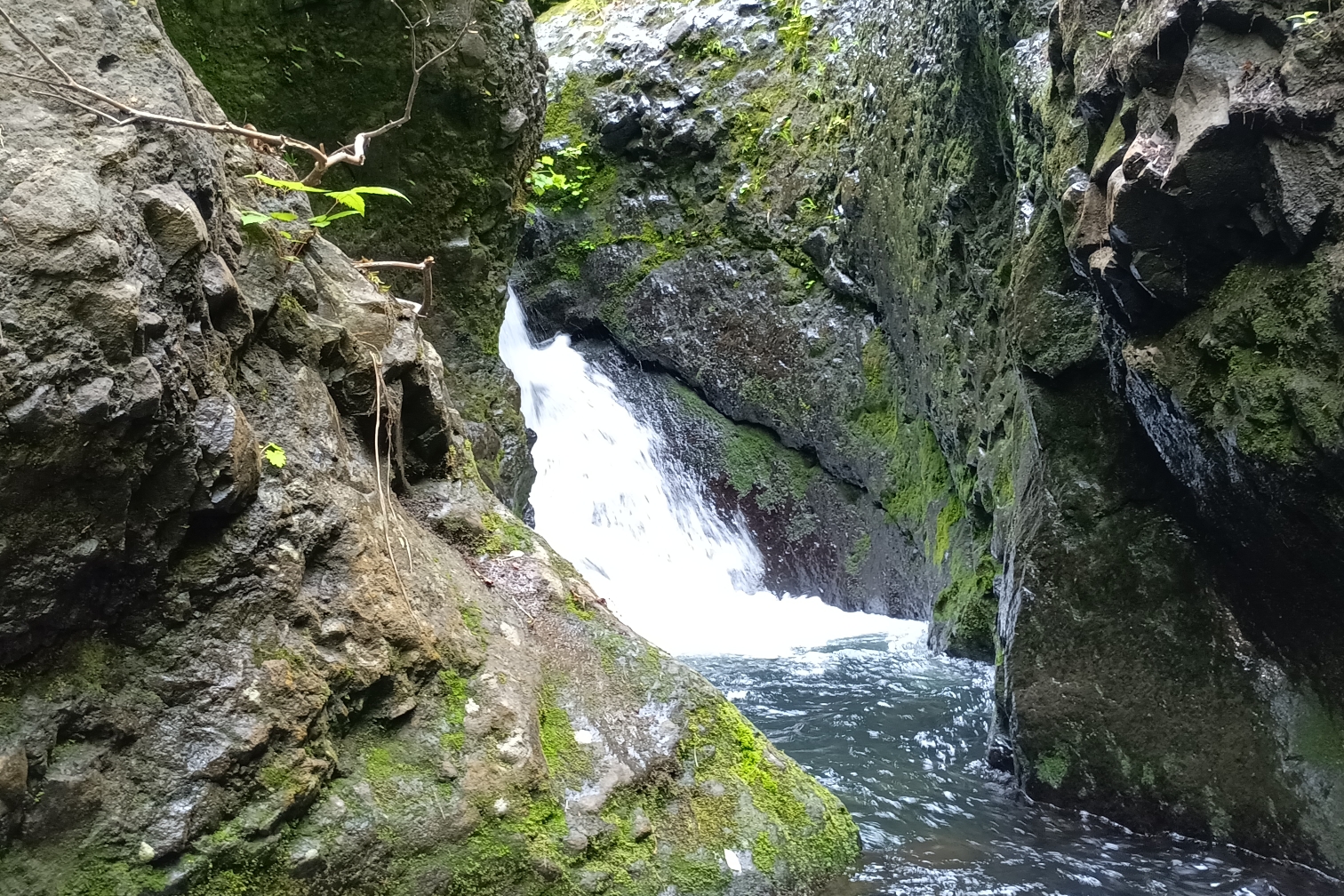 登ったすぐ先には小さい滝とお釜が。