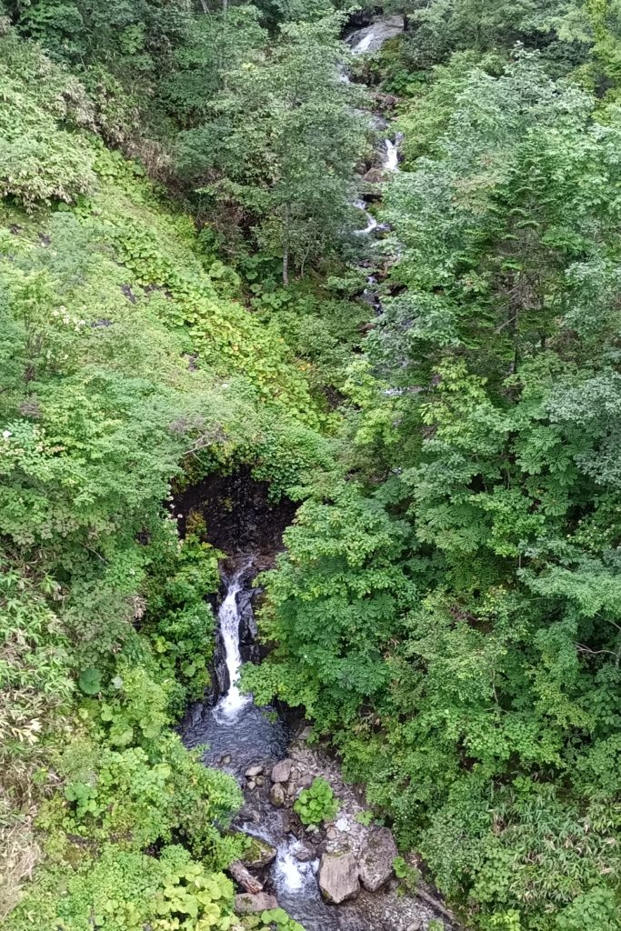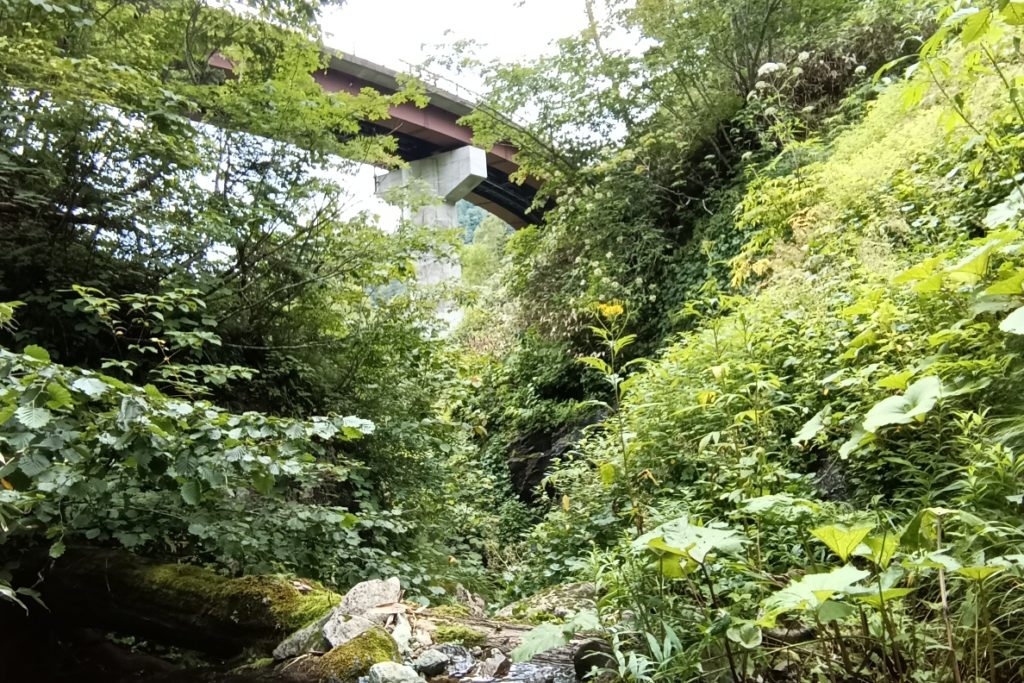 退渓地点の橋から沢を覗けたが滝までは見えなかった。